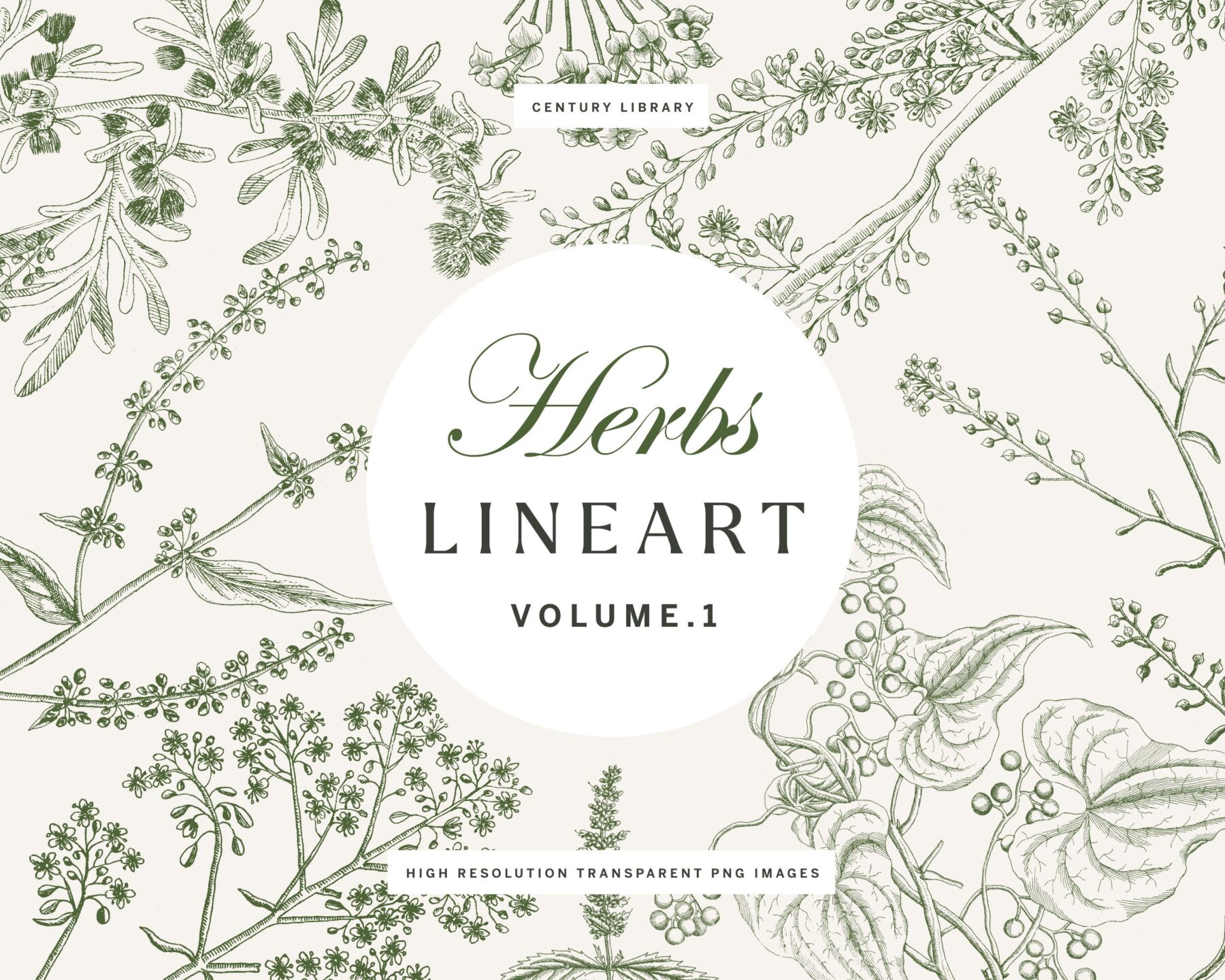120 Vintage Herbals: Transparent PNG Line Art Collection
