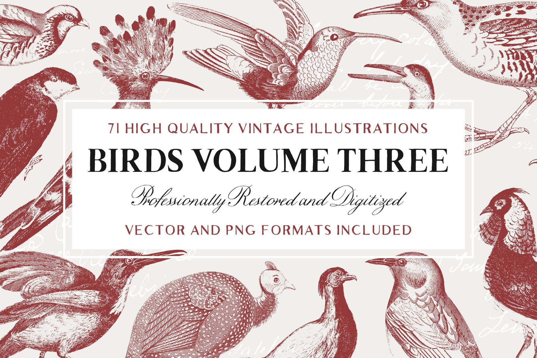 Our focus is to collect, restore and repurpose old and forgotten artwork for the modern creator and within this collection, you will find 71 bird illustrations that will be perfect for a whole variety of design projects; from logo design to apparel, from posters to scrapbooking and so much more.