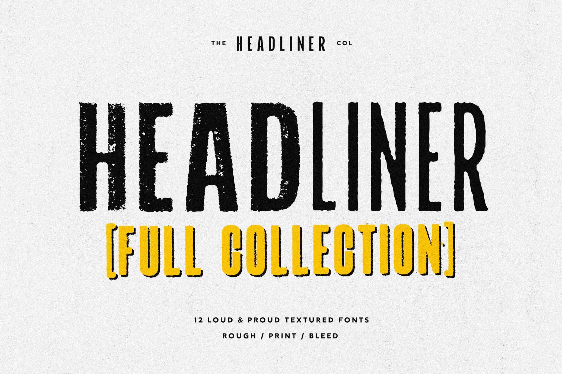 Proudly introducing the Headliner Textured Collection. Inside you’ll discover 12 display fonts specifically designed to grab and hold attention within your work. Based on the original design of it’s namesake, these textured alternatives adds beautiful and unique textures giving the typeface and your work an effective printed look without any additional work. Featuring Opentype kerning and multilingual support, this family is ready to command & conquer your projects right from the offset.