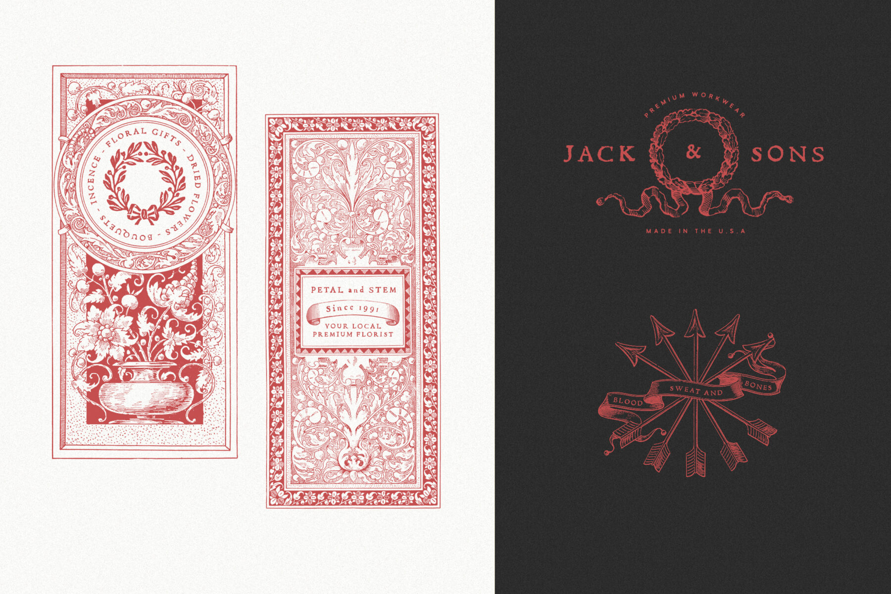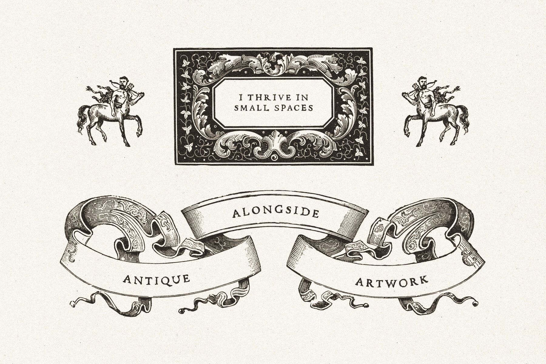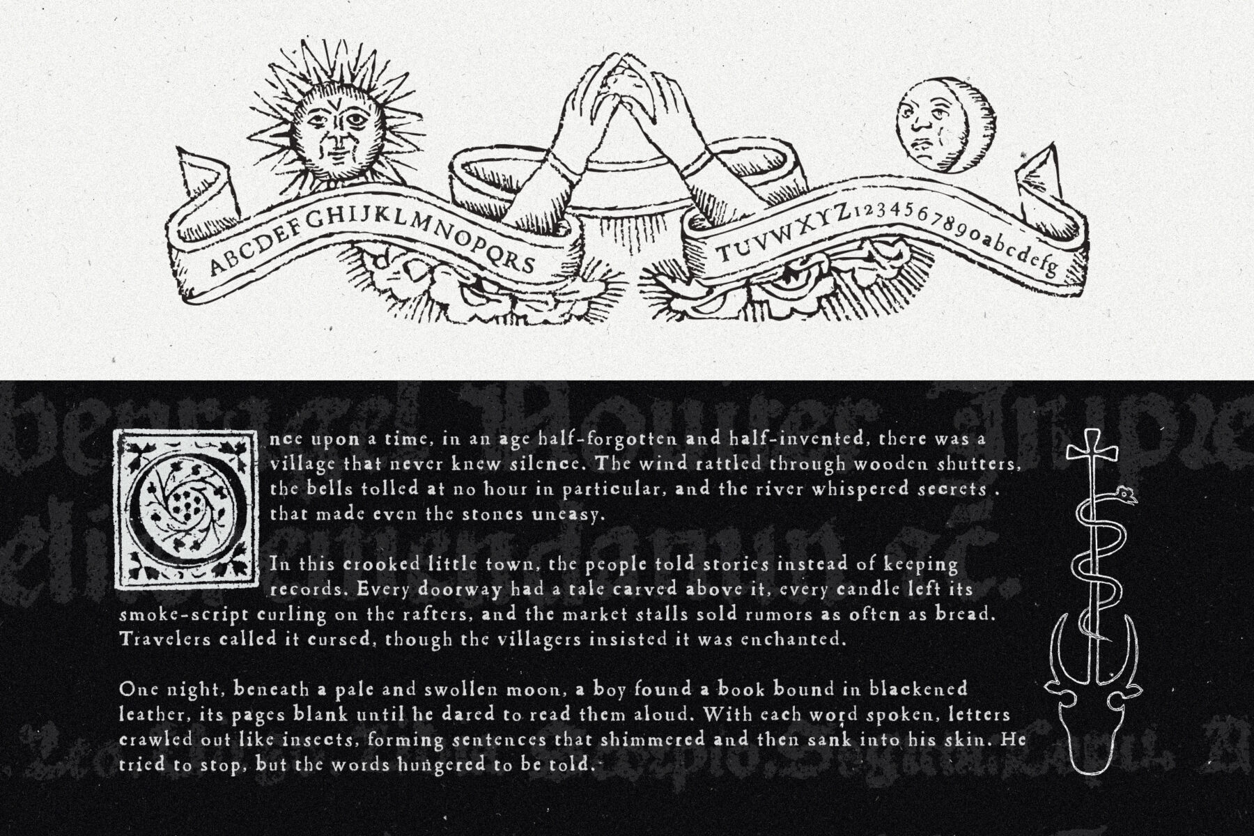 From wedding invitations and book covers to branding, packaging, and editorial layouts, Phantasmagoria carries the timeless charm of centuries-old print while adding a touch of mystery and atmosphere. It also includes a set of bonus symbols taken straight from the same era, ready to mix into your work.