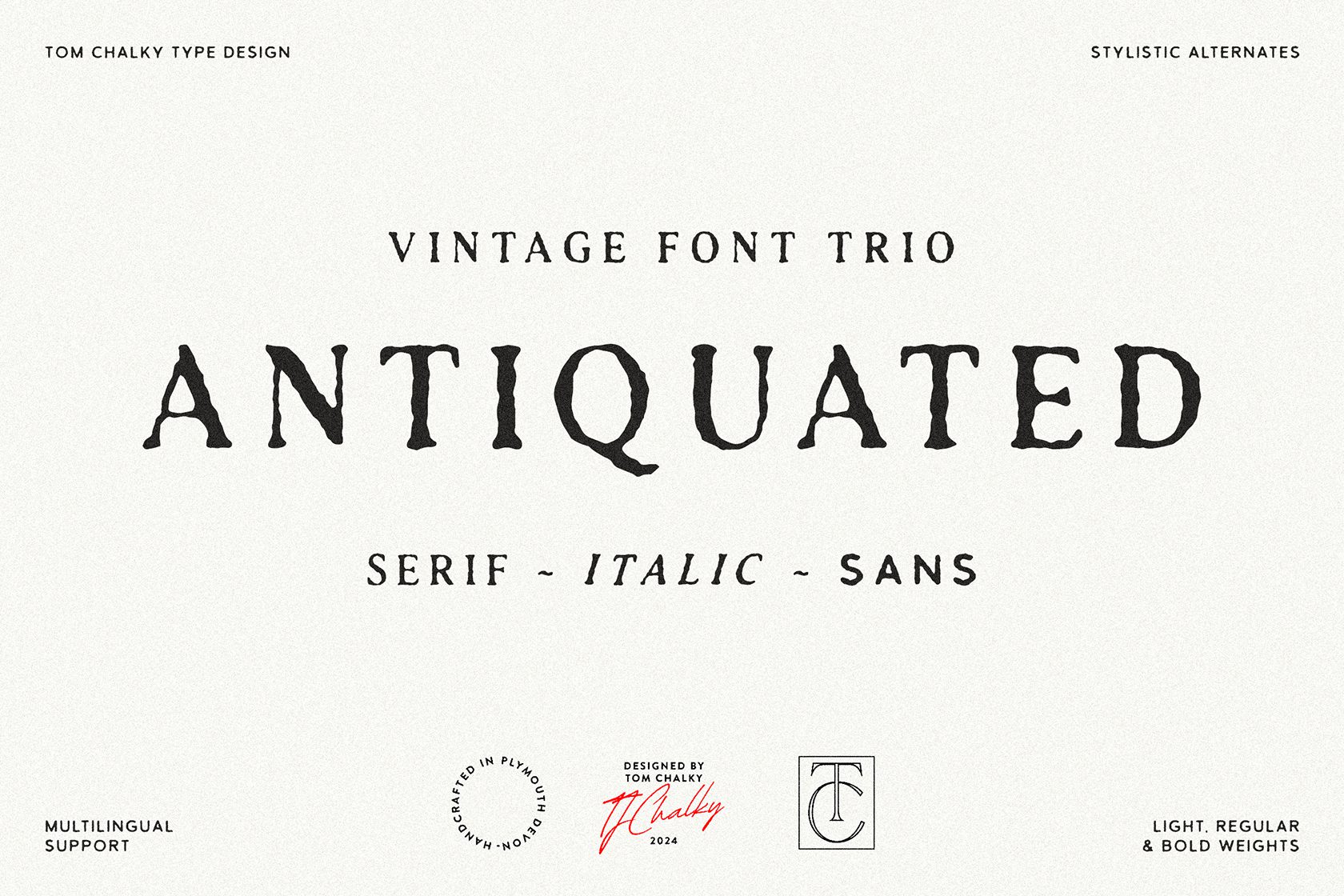 TC Antiquated – A versatile trio of typefaces, each available in three distinct weights, has been designed to be a wonderful blend of modern and rustic styles.