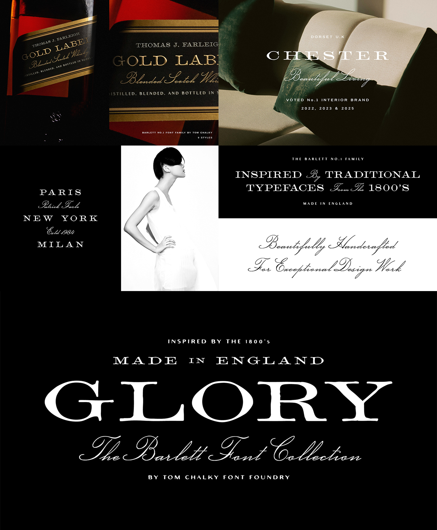 Barlett No.1 is a premium handcrafted font family that blends traditional charm with modern functionality. Inspired by 1800s English typefaces, this 9-style collection includes a range of serif styles and an elegant complementary script – all designed to bring a sense of character, imperfection, and manmade authenticity to premium design work.