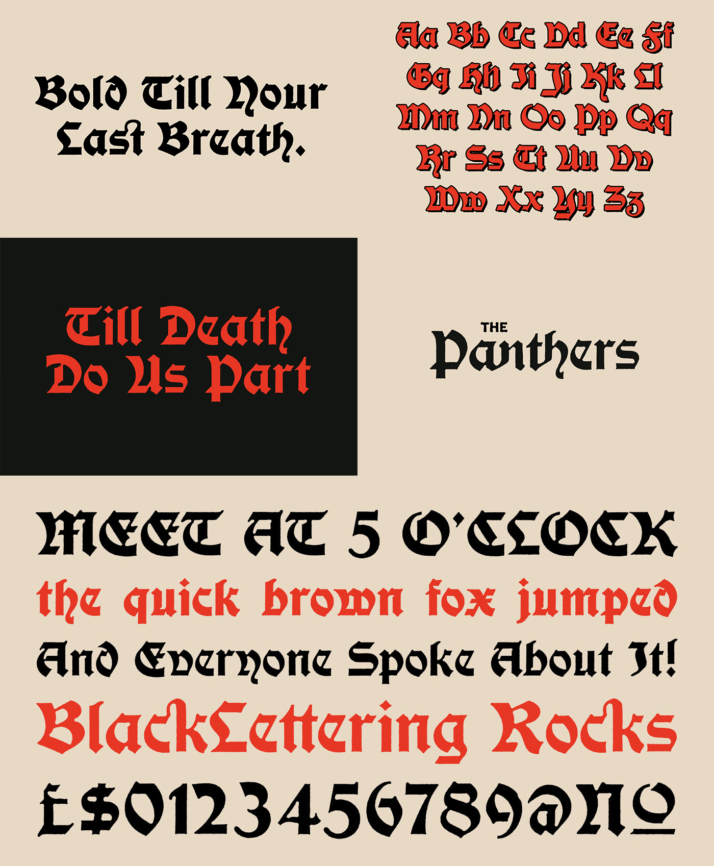 TC Blackcat is a bold reimagining of an 1800s vintage blackletter specimen. With its sharp angles, gothic curves, and a touch of modern refinement, this font balances tradition and versatility. Perfect for projects that demand attention, from branding and packaging to album covers and editorial design.